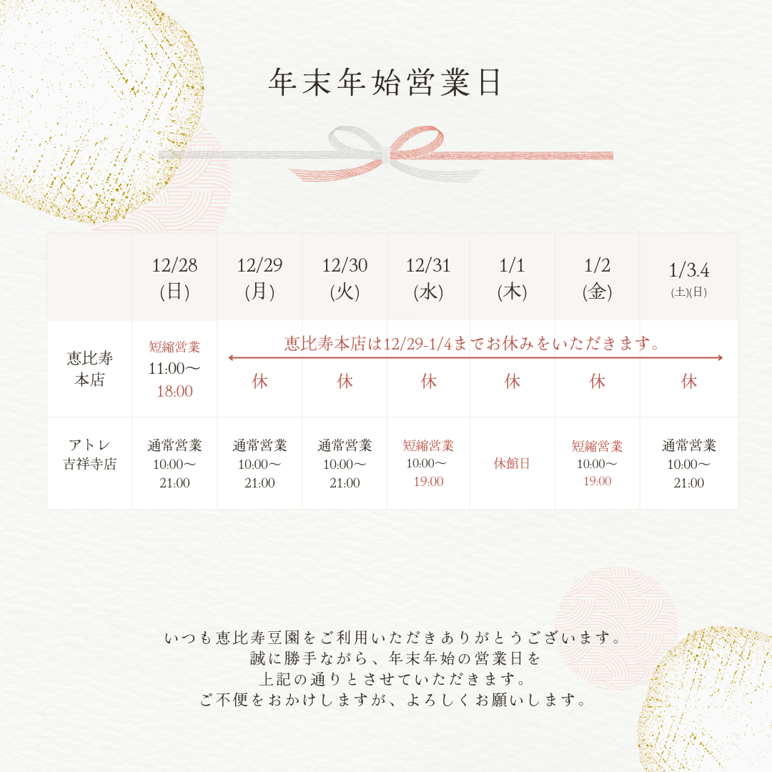 ▼恵比寿本店/オンラインショップ 12/29-1/4 お休みいたします。