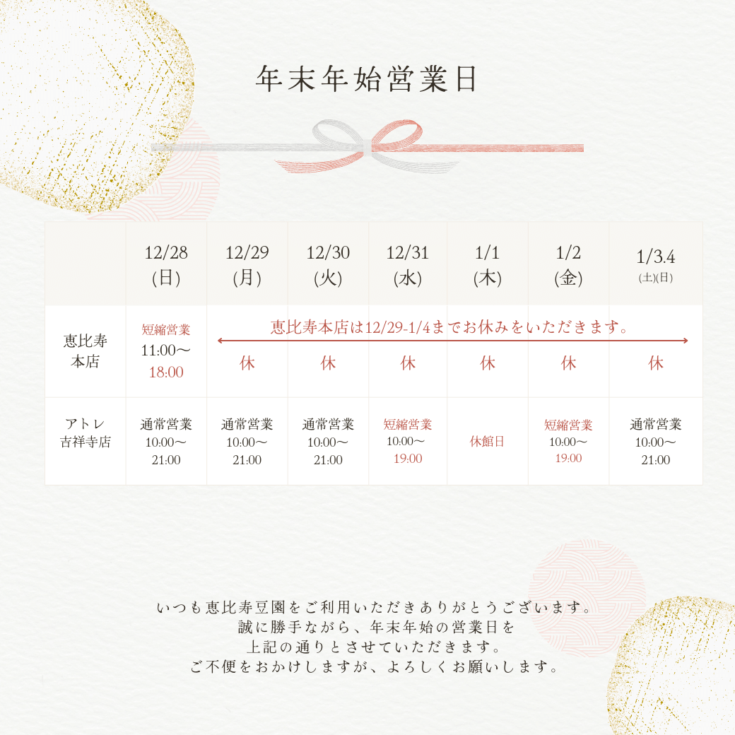 年末年始の休業日・商品発送日につきまして