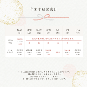 年末年始の休業日・商品発送日につきまして